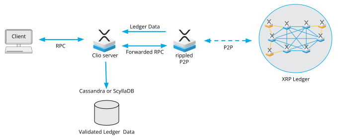 Clioサーバーはピアツーピアネットワークには接続せず、指定されたrippledサーバーからデータを抽出します。