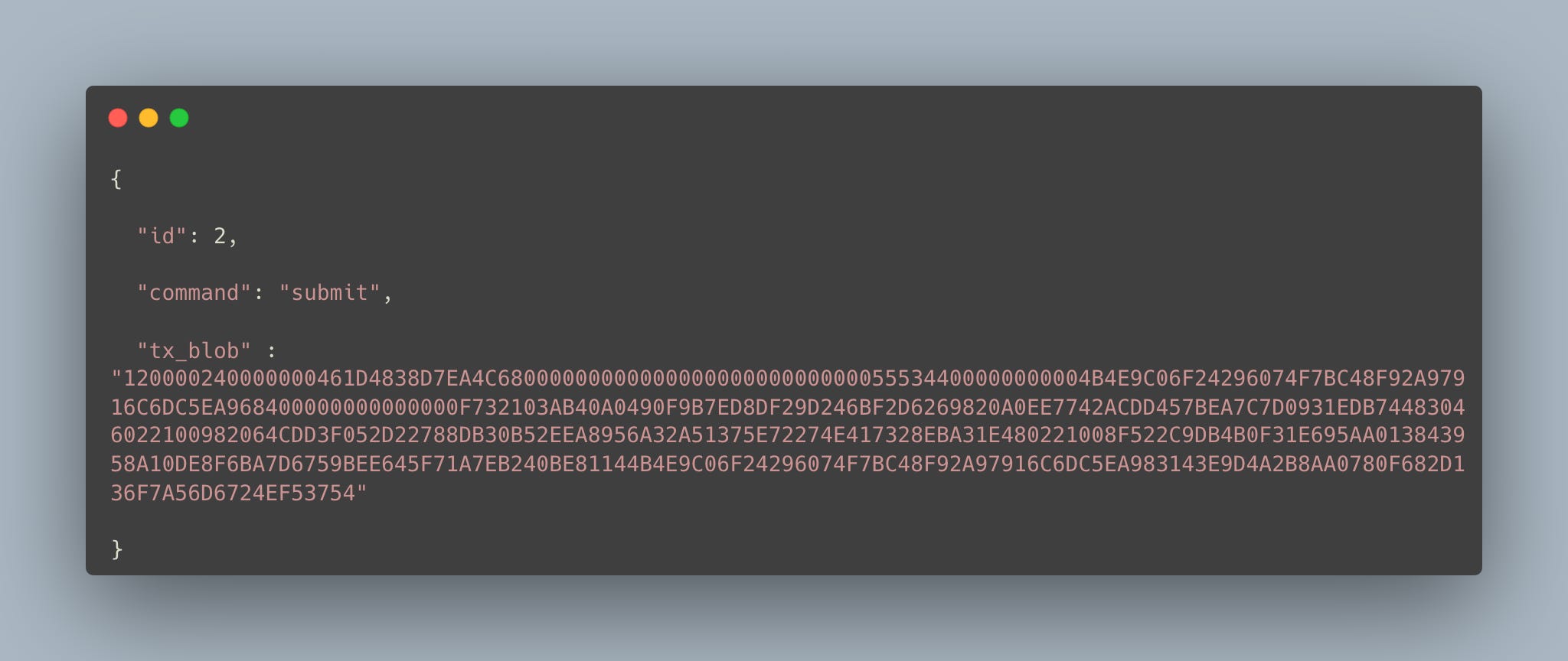 JSONで表現された未署名のPaymentトランザクションの例