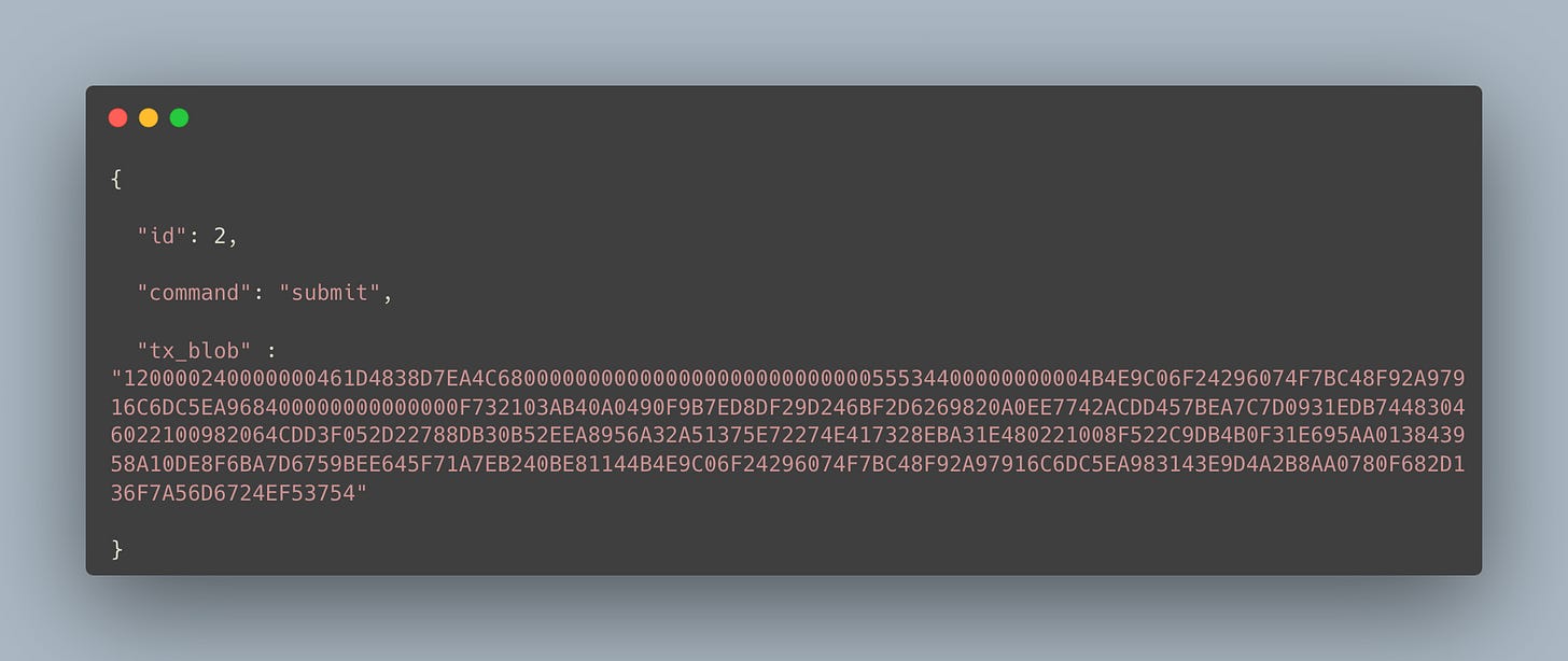 インスタンス)に送信します。トランザクションが適切に形成されている場合、サーバーは暫定的にそのトランザクションを現在のレジャーバージョンに適用し、ピアツーピアネットワークの他のメンバーにトランザクションを中継します。
