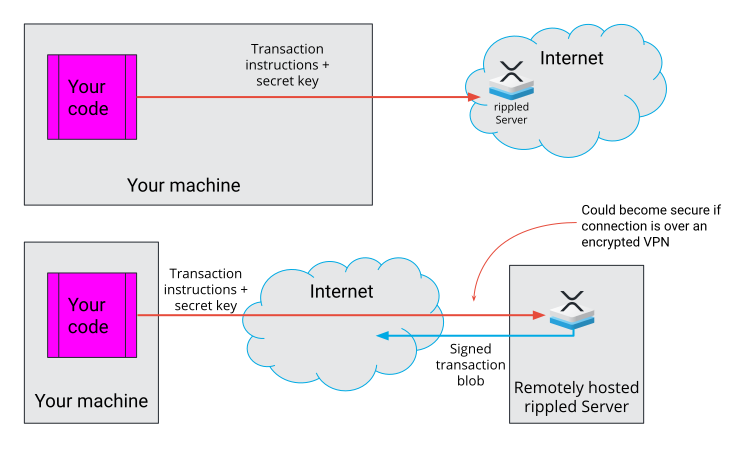 署名されたトランザクションのみがネットワークに送信され、検証済みのレジャーに含まれることができます。