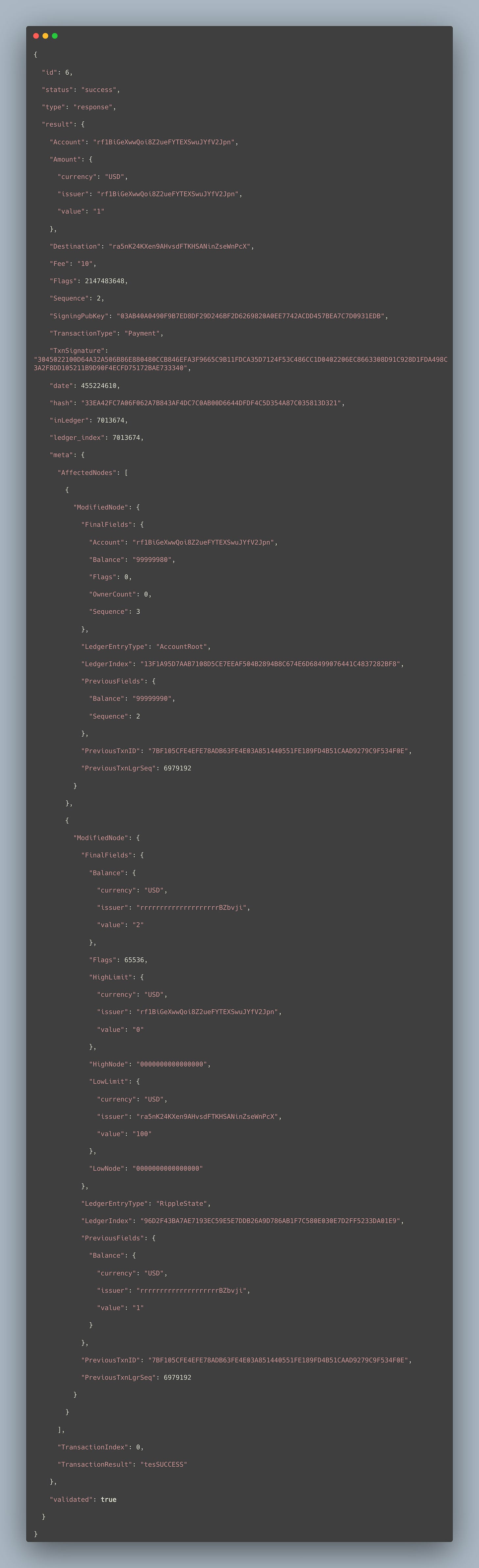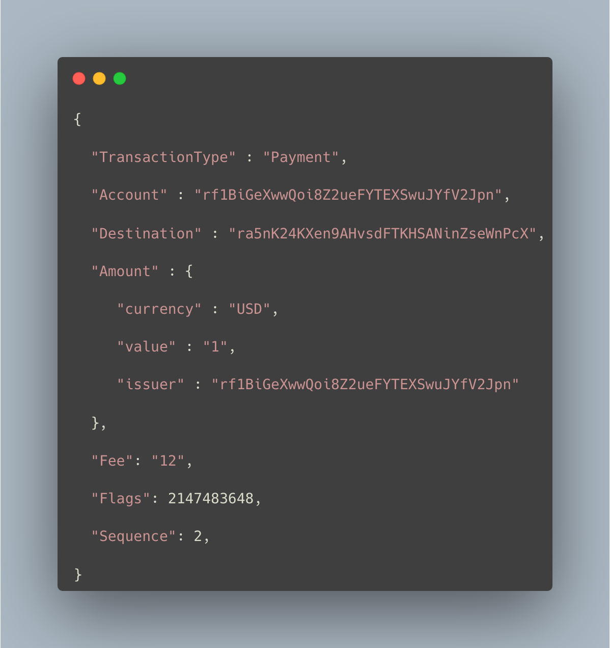 "TransactionType" : "Payment",