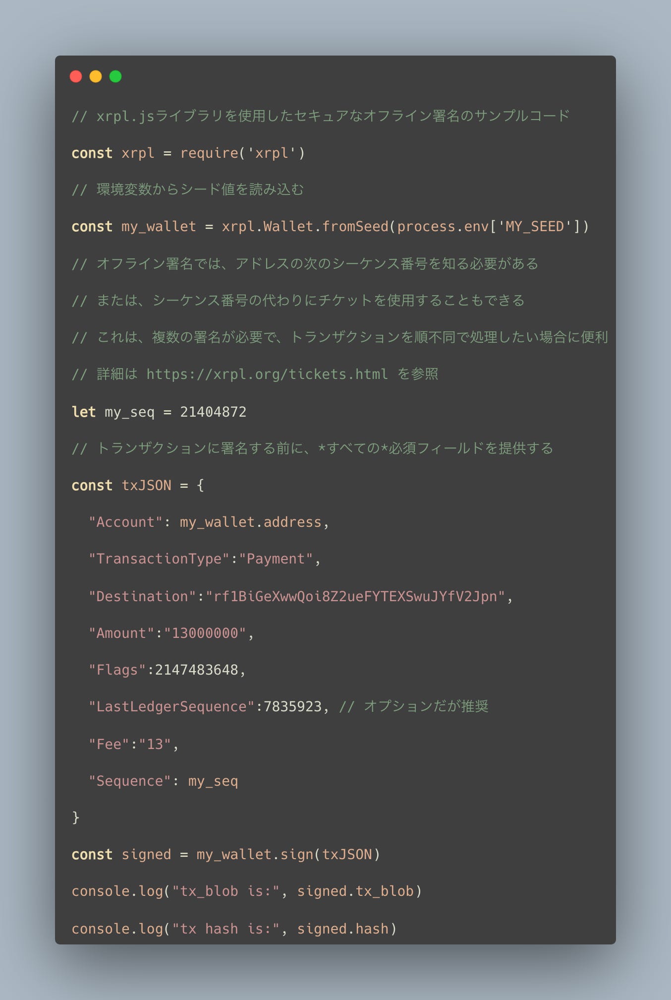 署名されたトランザクションは不変であり、その内容を変更することはできず、署名は他のトランザクションには有効ではありません。